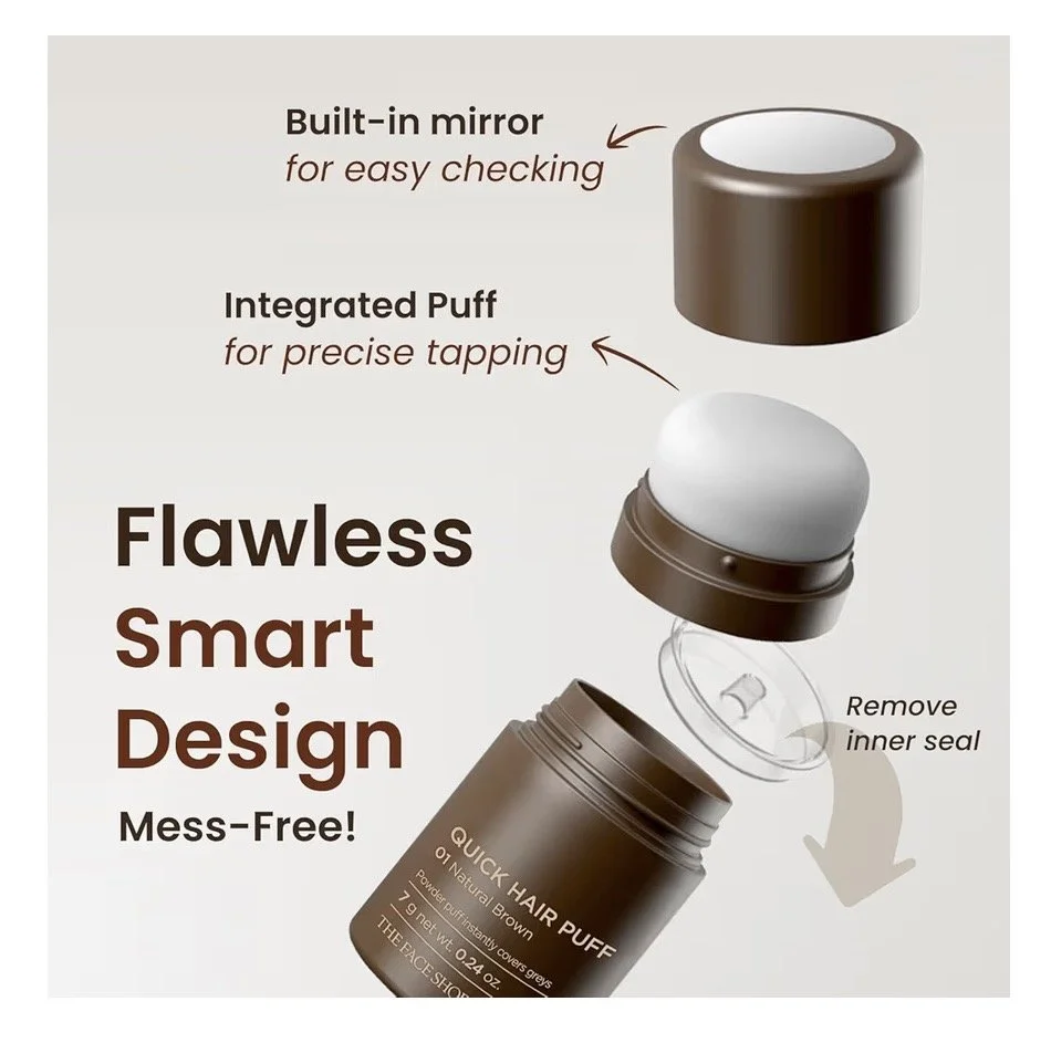 So I have this hair powder. Magical. Covers greys like a dream. You pop the top—no unscrewing involved.