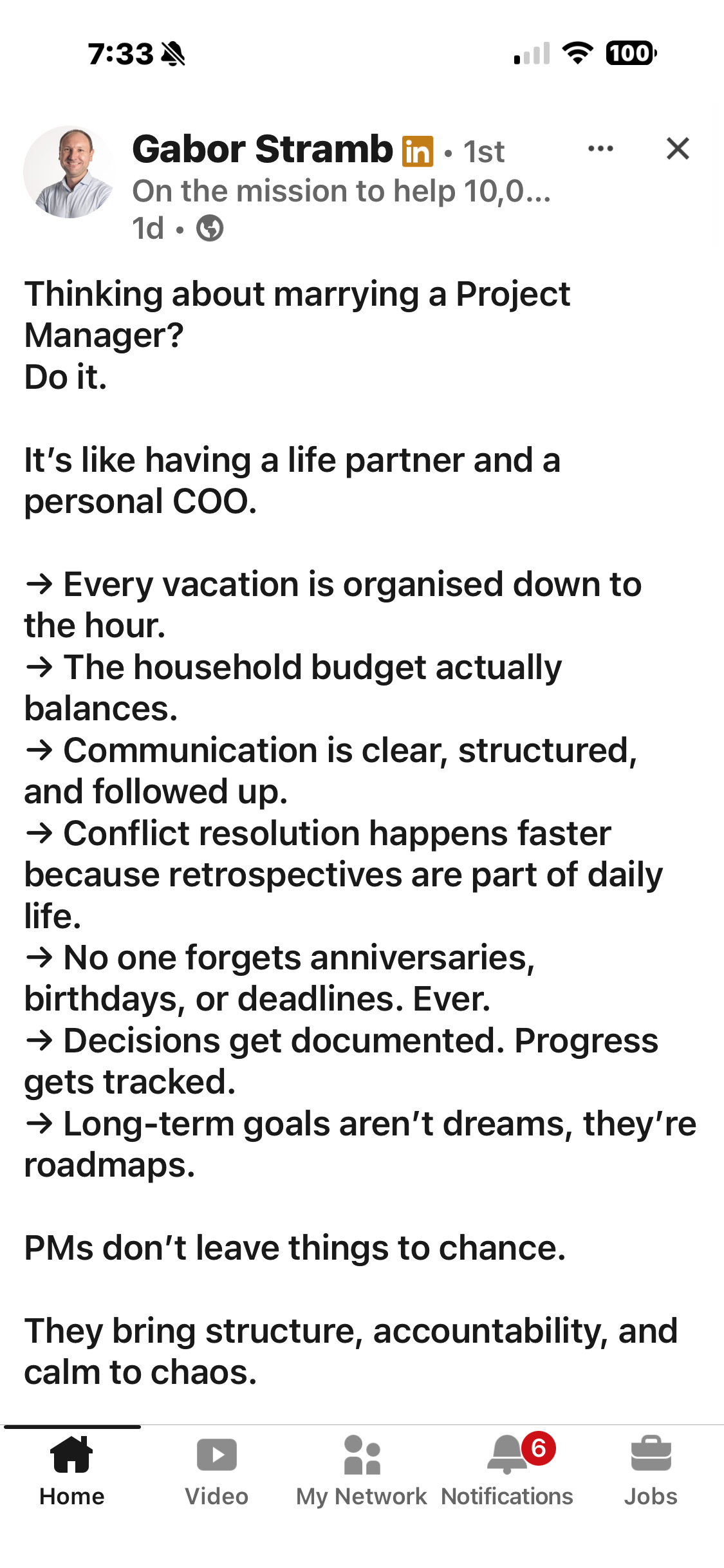I saw a post on LinkedIn about marrying a Project Manager — It said it’s like having a personal Chief of Staff (COO).